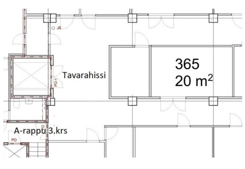 Vuokrataan varastoksi soveltuva 20m2 toimitila 3. kerroksesta. Yhteiskäyttöiset wc-tilat. Tavarahuolto tilaan lastauslaiturin/tavarahissin kautta. Tila sijaitsee tavarahissin läheisyydessä.