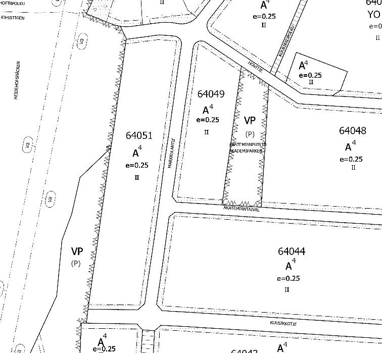 Kaava: AP e=0,25 II (Asuinrakennusten korttelialue)