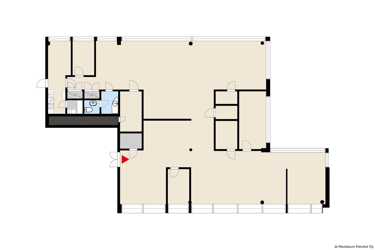 Tilan ominaisuudet: tilassa on ilmastointi, avo-/kombitoimisto
