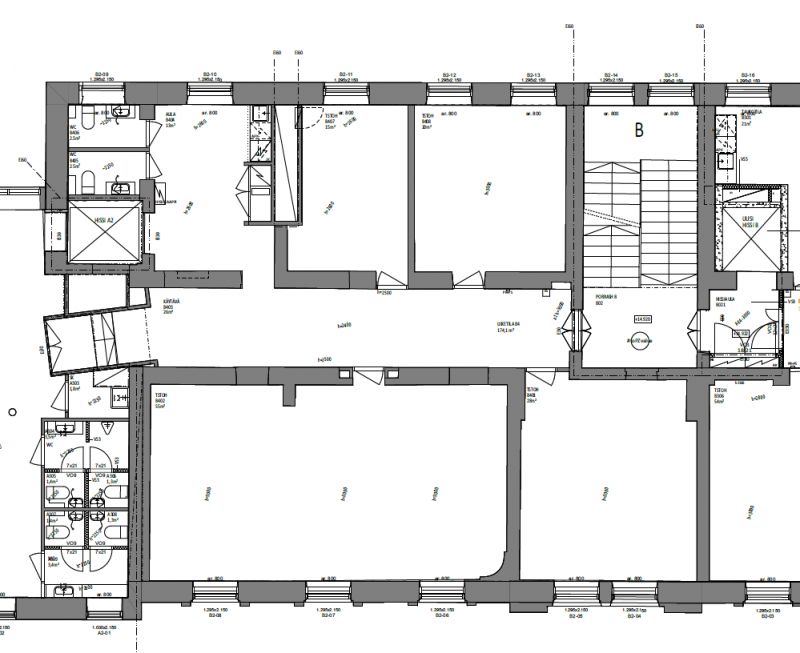 Remontoitu siisti toimistotila B-rapussa, 2. kerroksessa historiallisen kauniissa rakennuksessa, jossa näyttävä julkisivu ja suuret remonttihuolet takana.