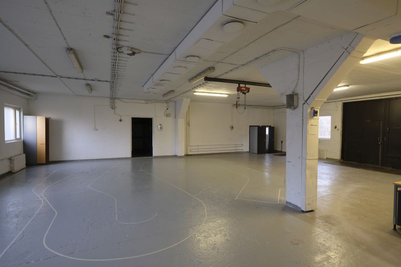 Tilat: 3 m korkea n. 178 m2 monitoimitila. Tilassa pukuhuone, toimisto ja wc.