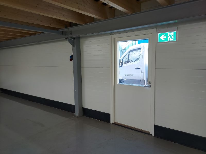 Assa Abloy kauko-ohjaus nosto-ovi 3,5x3,5m sekä käyntiovi.