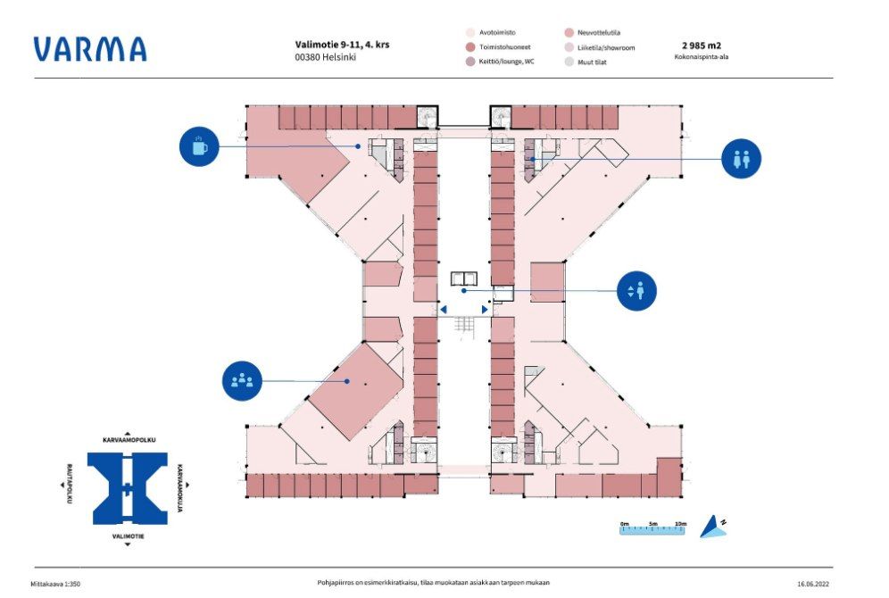 Kiinteistö Valimotie 9-11 sijainti on erinomainen Pitäjänmäen vilkkaassa toimistokeskittymän alueella. Valimon asema on vain 5min/450m päässä ja lähimmät bussipysäkit ovat vain 200m päässä Pitäjänmäen tiellä. Omalla autolla pääsee helposti kohteeseen eripuolilta pääkaupunkiseutua, Vihdintieltä, Turun moottoritieltä ja Hämeenlinnan väylältä.