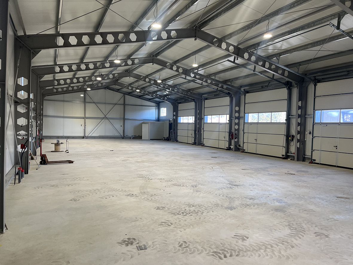 Tilan korkeus noin 4,4 - 6,15 m. Ovet 4 kpl (mitat 4,0 m x 4,5 m). Ovet toimivat kaukosäätimellä.