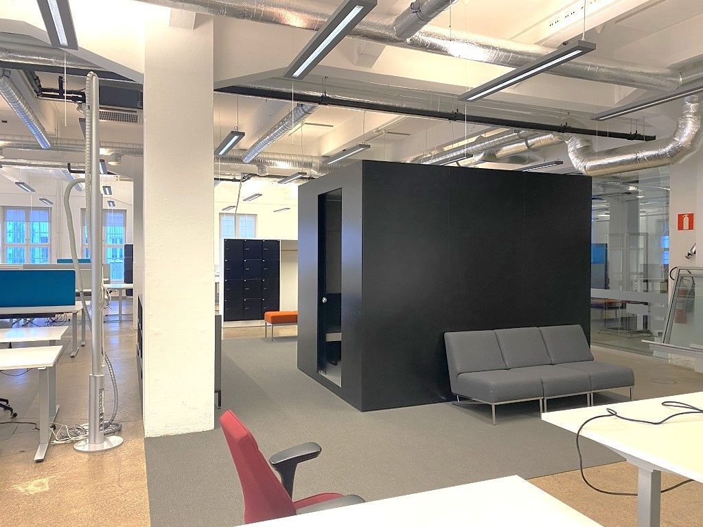 Tämä 4. kerroksen kombitoimisto soveltuu hyvin nykyajan hybridityön vaatimuksiin. Avotilaa, huoneita ja vetäytymistiloja, luokka- / koulutustila sekä keittiö ja sosiaalitilat.