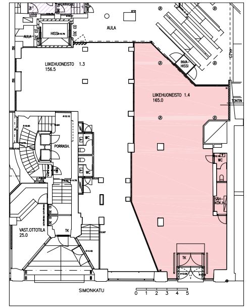 Vuokrattavana katutason siistiä liiketilaa. Tilan voi yhdistää viereiseen 156,5 m2:n liiketilaan. Tilaan sisäänkäynti sekä Simonkadulta että kauppakeskuksen puolelta.