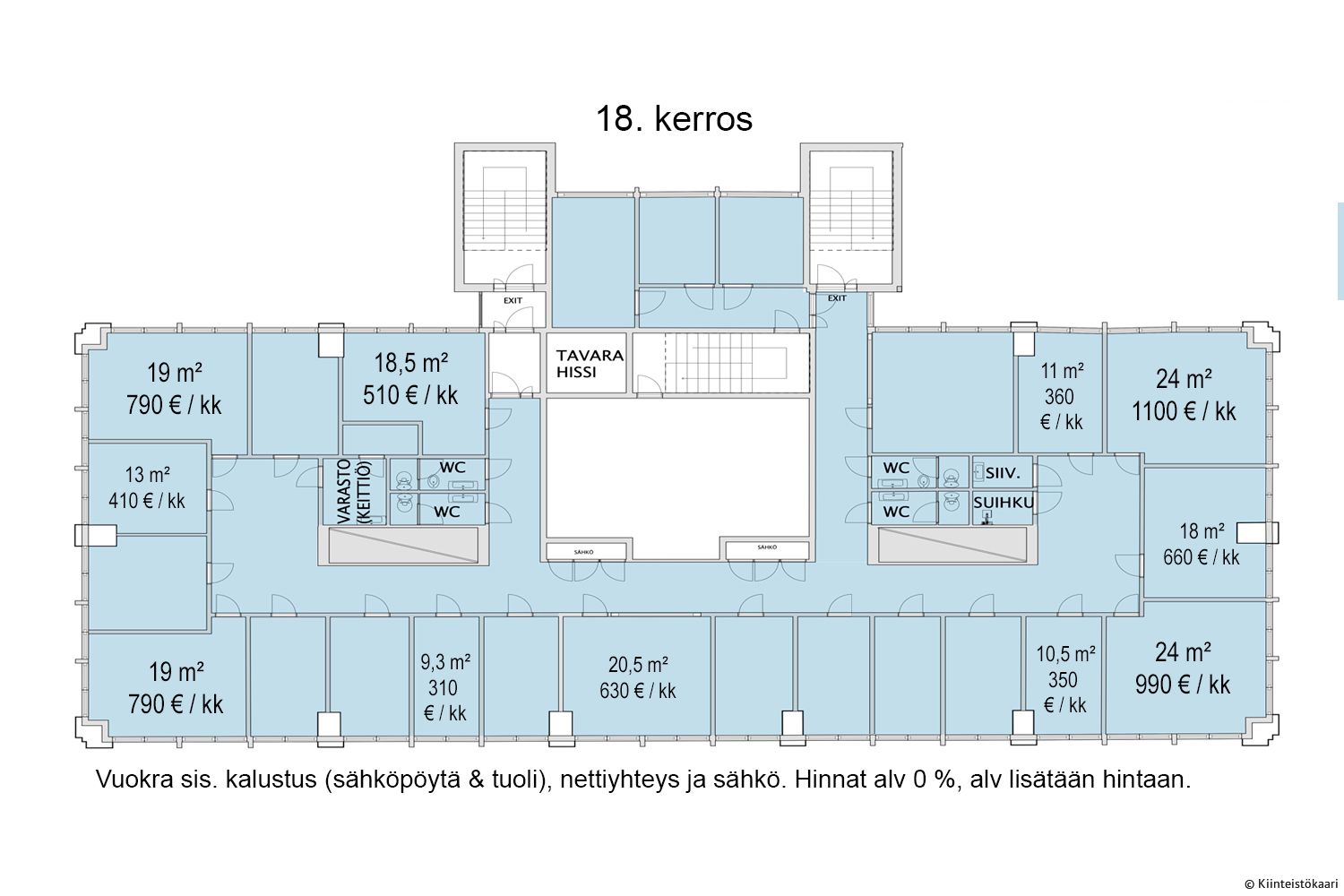 Meritornin yli kerros, joista upeat näkymät Helsingin kattojen yli / merelle. Vuokrataan kalustettuja toimistohuoneista, myös nettiyhteys ja sähkö sisältyvät vuokraan. Kerroksessa yhteiskäyttöiset sosiaalitilat ja neuvotteluhuone. Vuokrataan myös arvonlisäverottomaan käyttöön. Ota yhteyttä ja tule tutustumaan tilavaihtoehtoihin paikan päällä!