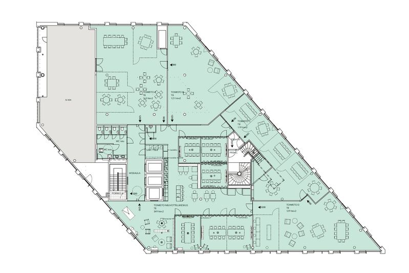 Ylimmän kerroksen 891 m² toimisto tyylikkäästä vastavalmistuneesta kohteesta, loistoyhteyksien varrelta Hakaniemestä.