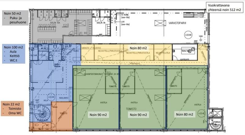 Vuokrataan toimistotilaa Espoon Kauklahdessa. Tilassa keittiö ja wc-tilat. Voidaan jakaa myös pienempiin osiin esimerkiksi ilmoituksen pohjakuvan mukaisesti.