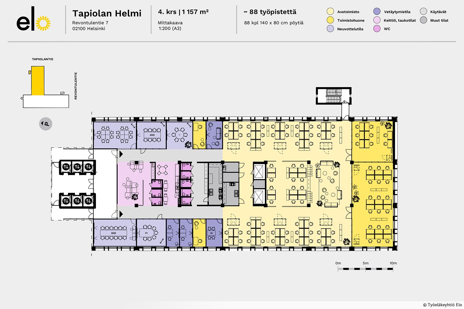 Valoisa, koko pohjoisen toimistosiiven käsittävä toimitila, jossa on ikkunat kolmeen ilmansuuntaan. Tiloihin voi joustavasti sijoittaa Koko siiven suuri toimistotila jopa 88 työpisteellä. Tilan ikkunat kolmeen ilmansuuntaan, ilman seinänaapureita. Tilassa 6 neuvotteluhuonetta, 4 vetäytymistilaa ja näyttävä cafe/lounge.