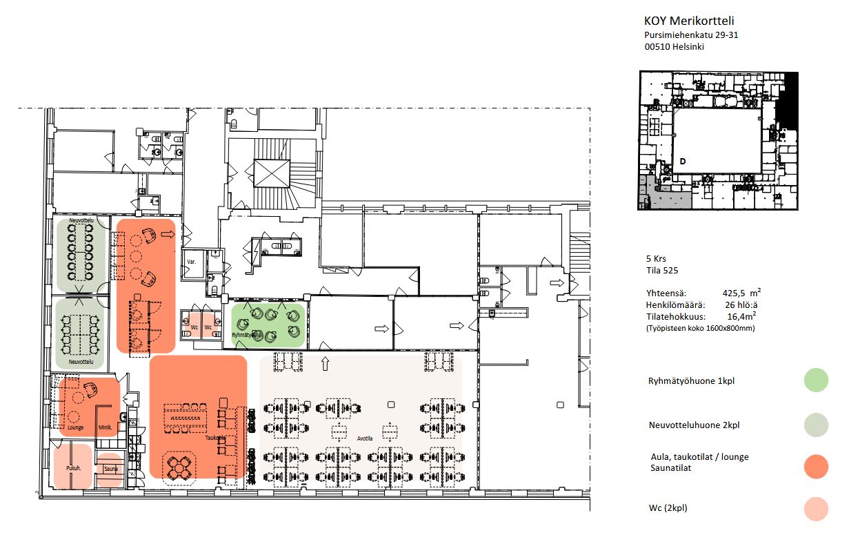 Vuokrataan upea 5. kerroksen kulmatoimisto, omalla saunalla. Ohessa havainnollistavia kuvia kiinteistöstä.