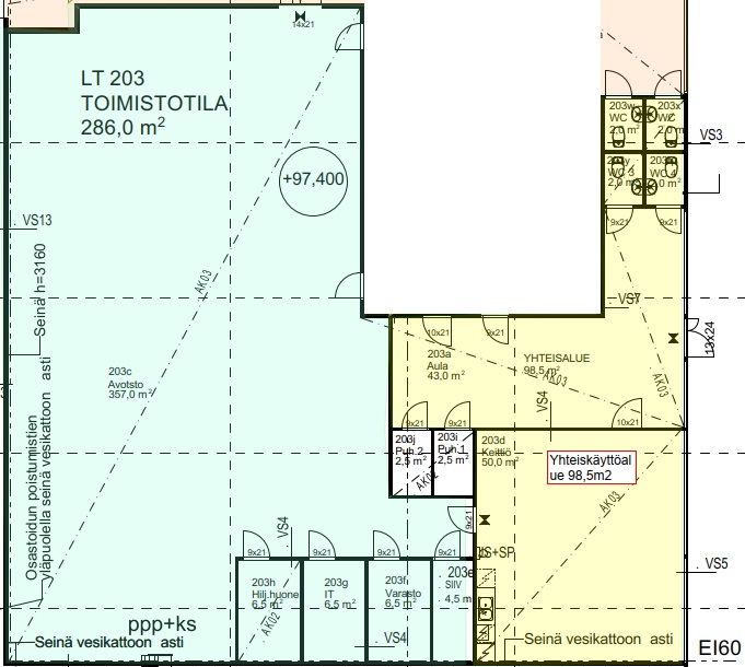 Kauppapaikka Hermannista toimitila 286m2 ja yhteiskäyttöinen keittiö, sisääntulo ja wc:t. Yhteiskäyttöalue on 98,5m2 yhteiskäyttö alueen siivouksesta huolehtii vuokranantaja. Lisäksi vuokralaisten käytössä on erillinen kokoustila, jonka voi varata sähköisen kalenterin kautta.