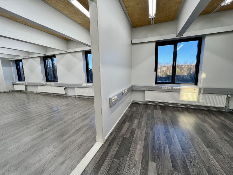 Toimistorakennus Leaf Centerillä, jonne saavutaan Hiidenkadun portista. Tämä huone voi olla osa suurempaa, jopa n. 390m2 kokonaisuutta.