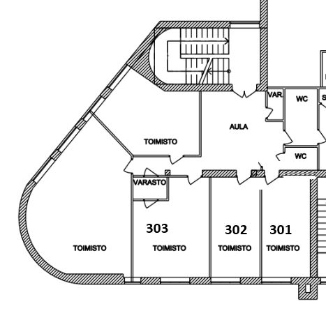 Tämä 32 m² toimistotila sijaitsee kiinteistön 3. kerroksessa. Tila on mahdollista vuokrata myös yhdessä viereisten huoneiden kanssa, jolloin kokonaispinta-ala on 51,5 m² tai 71 m². Kerroksessa on yhteiskäyttöiset sosiaalitilat.