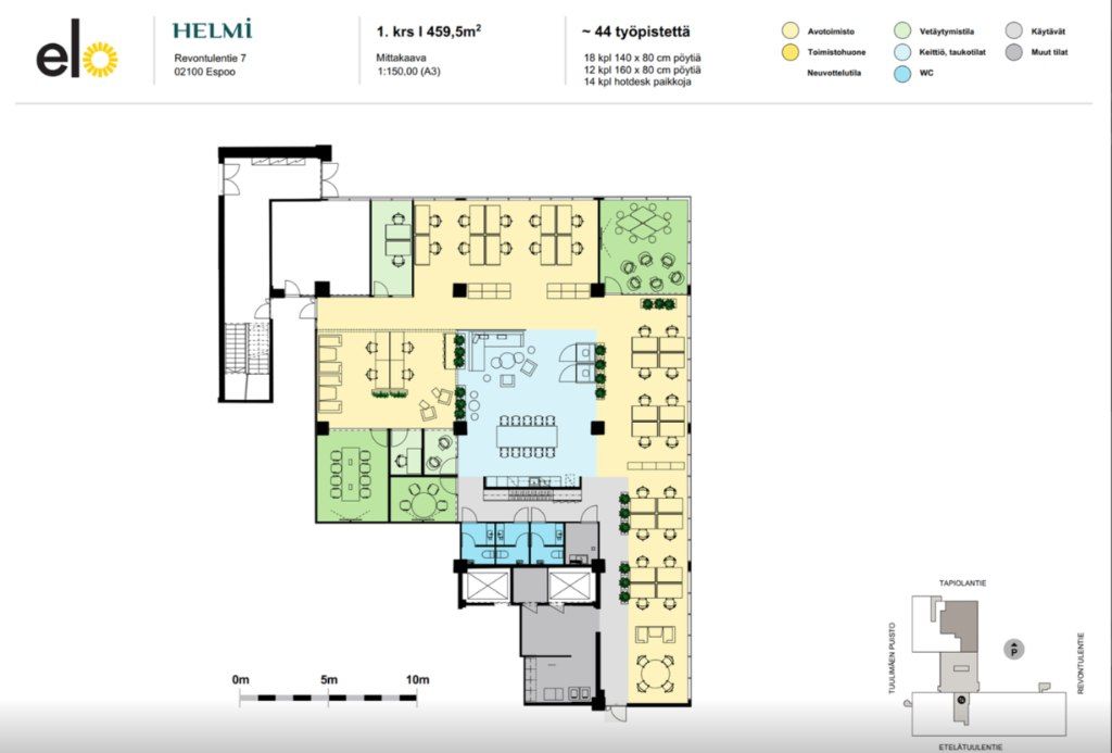 Toimistorakennus sijaitsee huippupaikalla Espoon Tapiolassa. Kiinteistössä on myös aulapalvelu, lounasravintola ja vuokrattavia kokoustiloja.