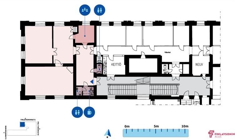 Toimistotila Finlaysoninkatu 4:ssa, Pääkonttori-rakennuksen tiloissa. Kolme avotilaa ja neuvotteluhuone. Lisäksi toimistosta löytyy minikeittiö sekä wc-tilat. Tilan ikkunoista avautuu näkymät kolmeen suuntaan. Tilaa voidaan muokata vastaamaan paremmin tarpeitanne.