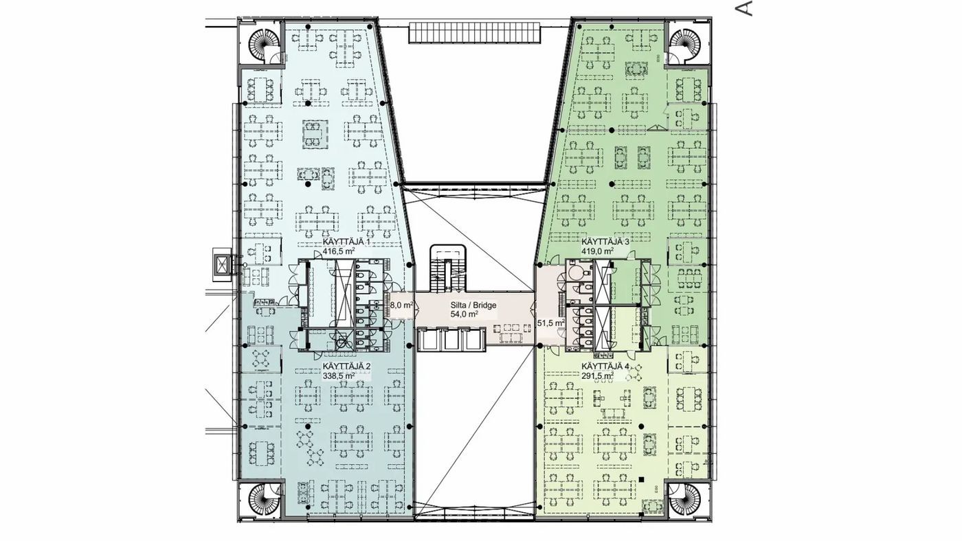 Vuokrataan modernia toimistotilaa 419m2, joka on jaettavissa 4 osaan.