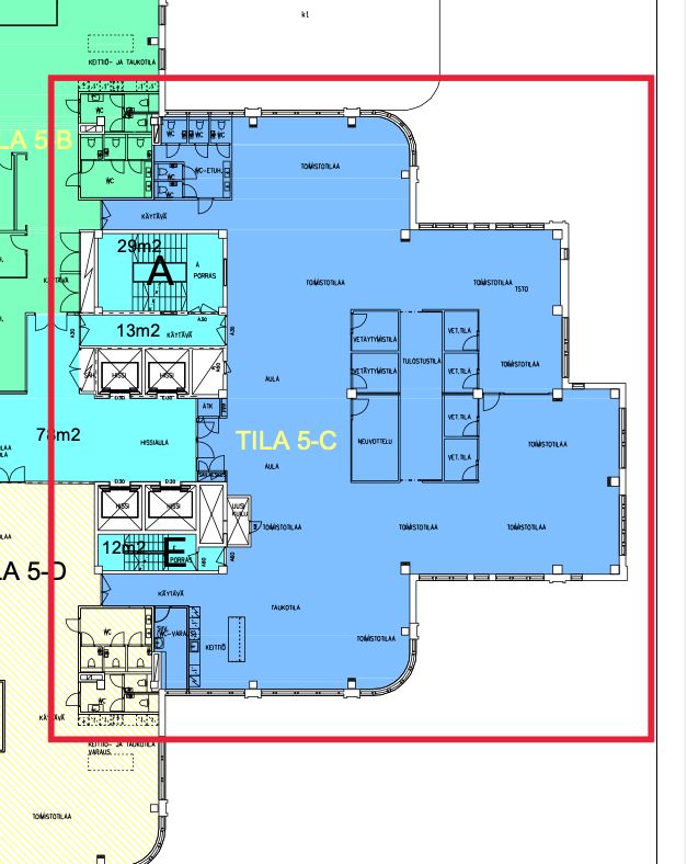 Tässä kohteessa on runsaasti vuokralaisten yhteiskäytössä olevia tiloja, kuten suuri neuvottelutila kokonaisuus ja work-lounge alueita, sekä auditorio, kuntosali, liikuntatilat ja sosiaali- ja saunatilat.