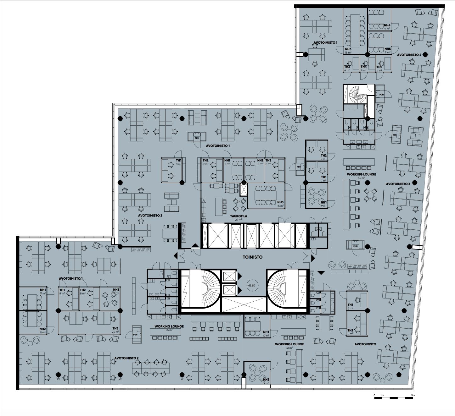 Harvoin saatavilla oleva suuri yhden tason toimistotila, joka remontoidaan vuokralaisen tarpeiden mukaan. Tila sisältää kerroksen hissiaulan.