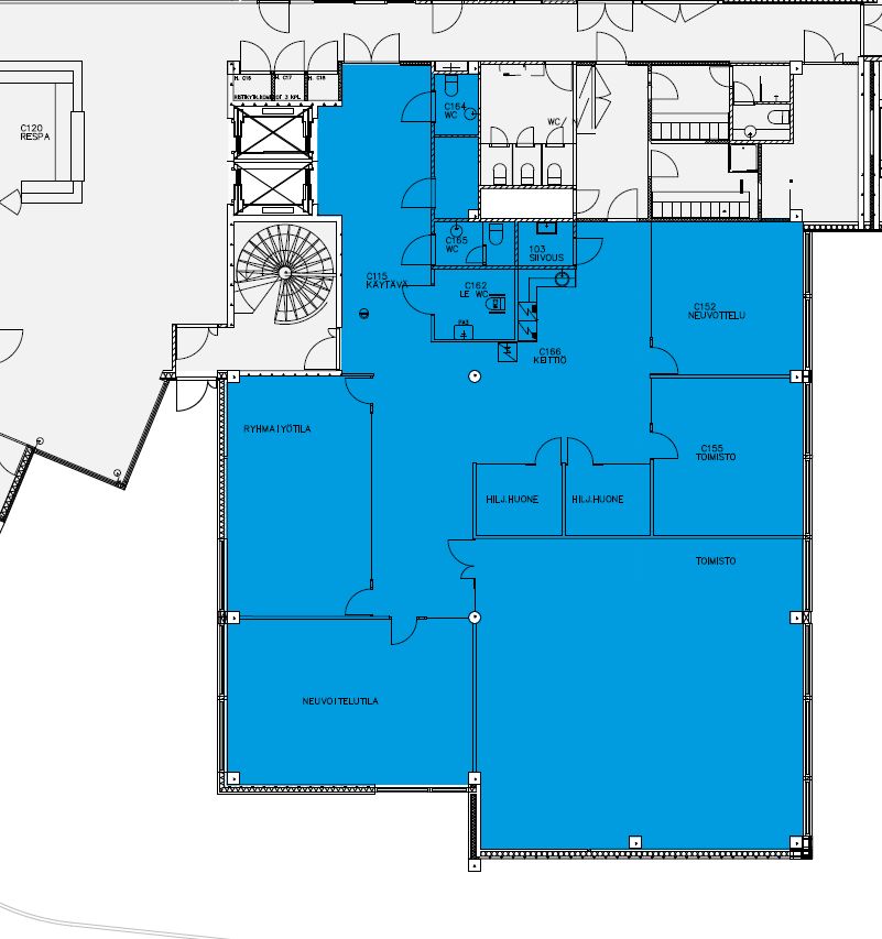 324m2 toimistotila huoneilla, pieni keittiö ja muokattava auditorio/luentosali + jyvitettävä yhteisistä sosiaalitiloista.