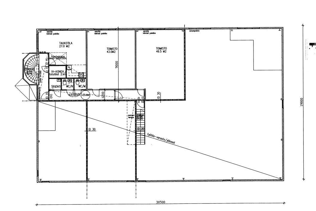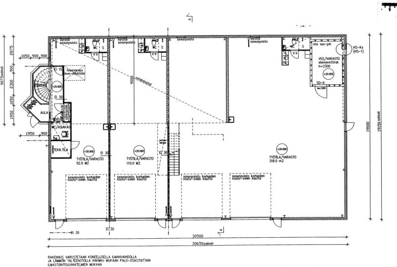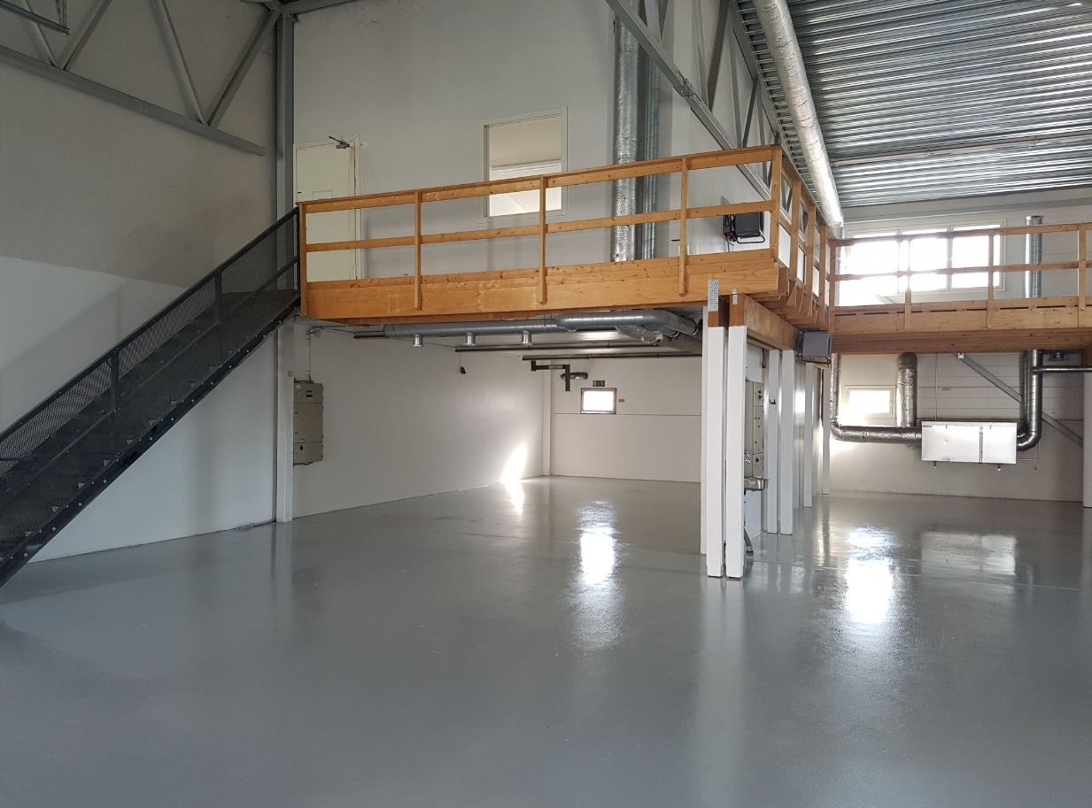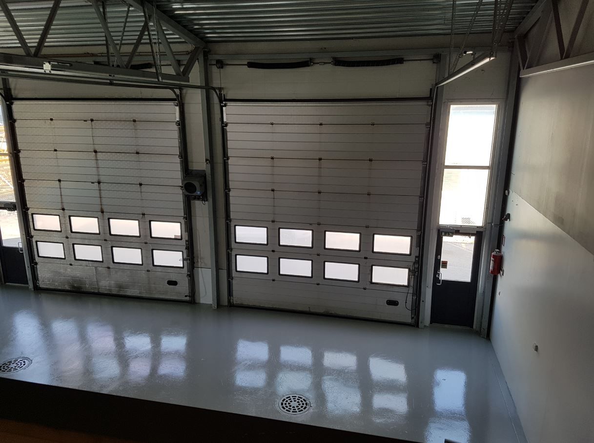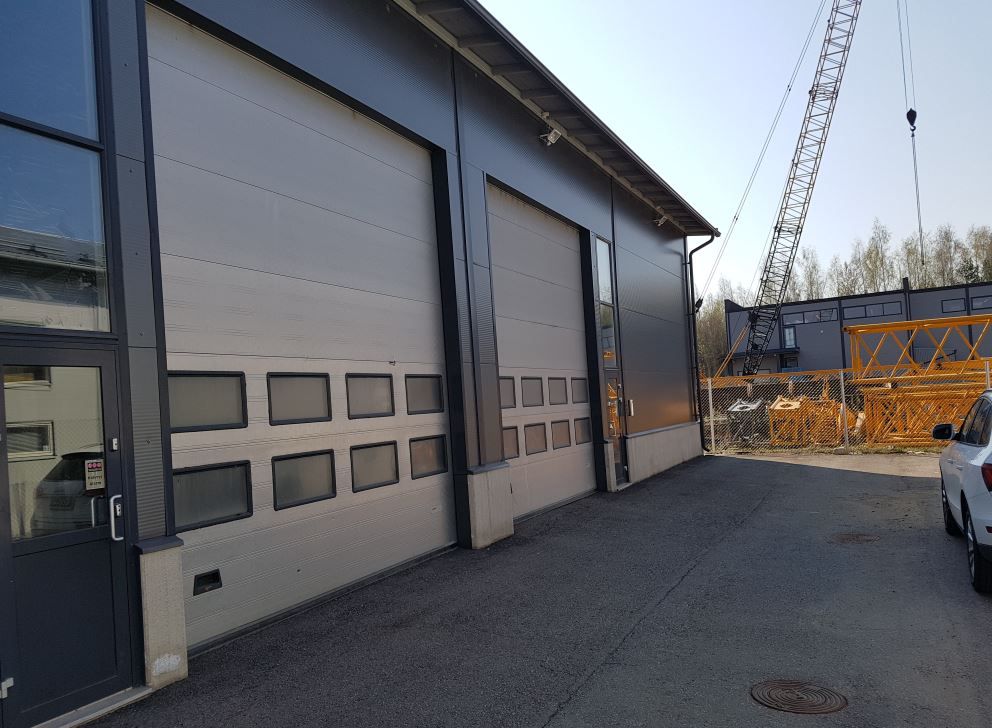 4 kpl 4,2 m korkeaa nosto-ovea, öljynerotuskaivot. Tilan vapaa korkeus osin n 5,5 m. Katutasolla lisäksi wc ja suihku + varastotila(vss). Osaan tilan päädystä rakennettu parvivarastotilaa, jota ei laskettu mukaan em neliöihin.
