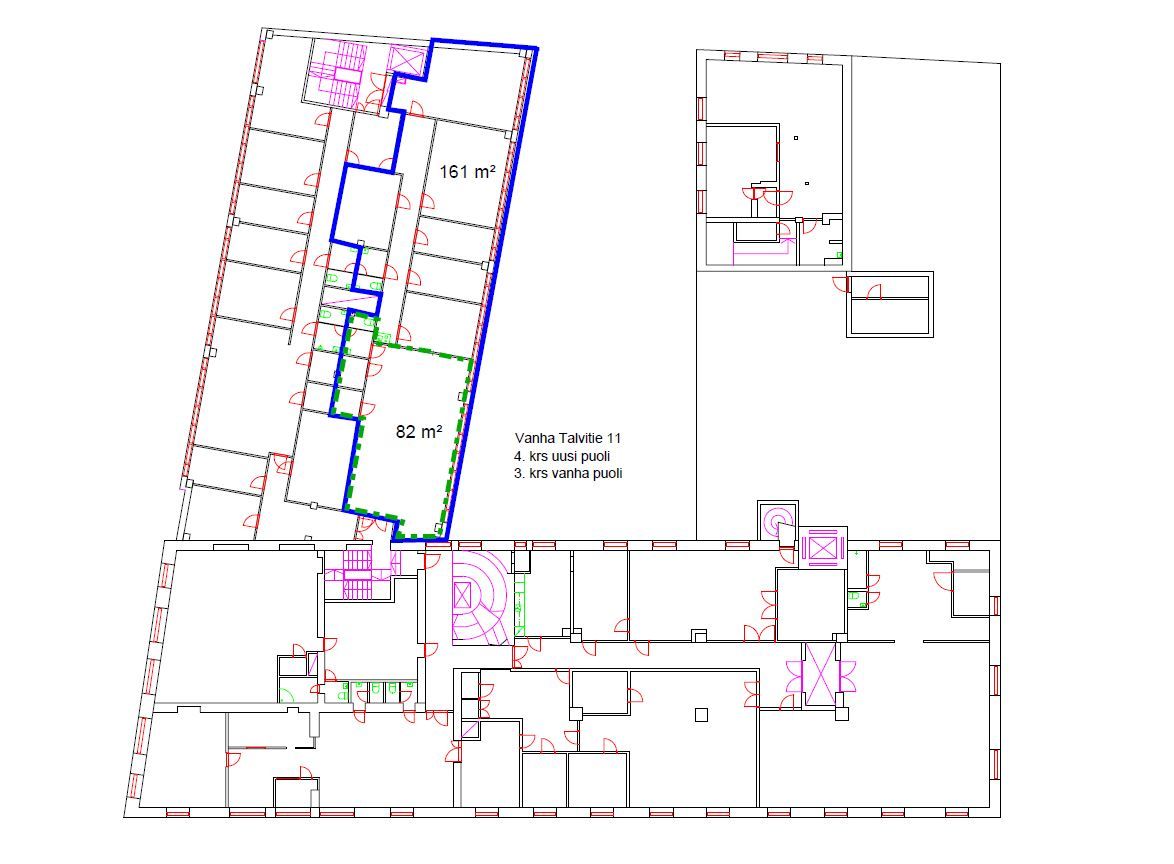 Vuokrattavissa toimistotilaa 4. kerroksessa Kalasataman metroaseman kupeessa. Tila sijaitsee kiinteistön uudella puolella, joka on rakennettu vuonna 1991.