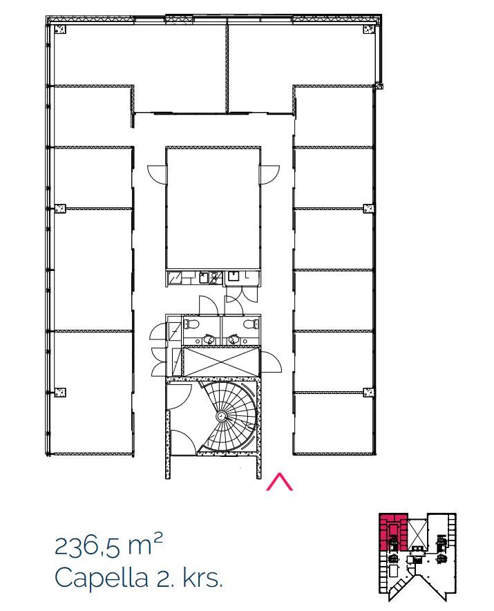 Vuokrattavana toisen kerroksen toimistotila.