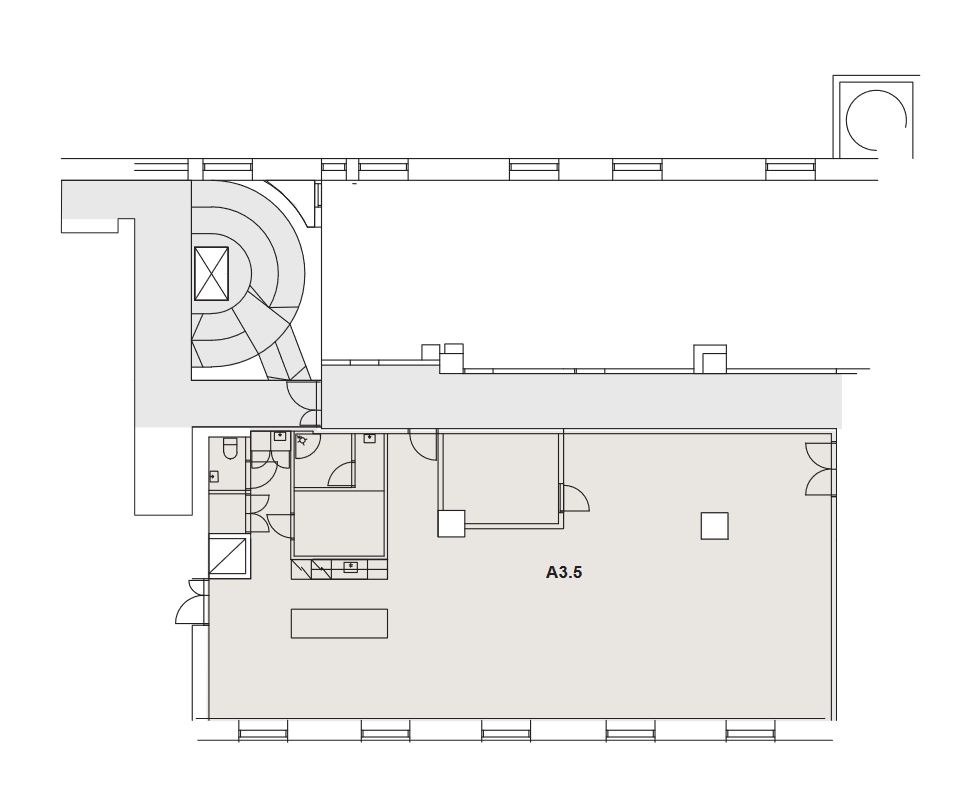 Vanhan puolen tila, josta näkymät sisäpihalle kattojen ylle. Tilaan tehdään pienkeittiö. Vessat uusittu putkiremontin yhteydessä. Tilaan kuuluu osuus yhteiskäytävästä. Tilaan pääsee tavarahissillä.
