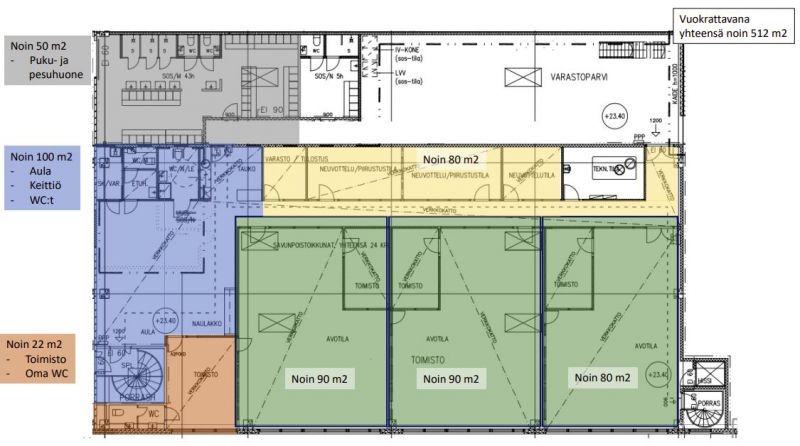 Samassa kiinteistössä toimii myös konevuokraamo ja talotekniikka-alan yritys.