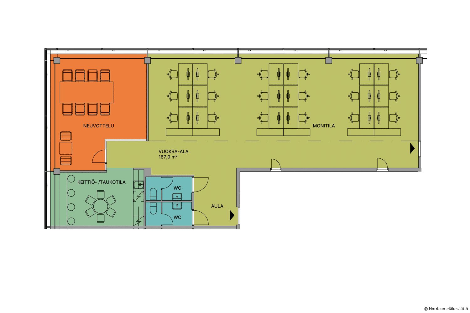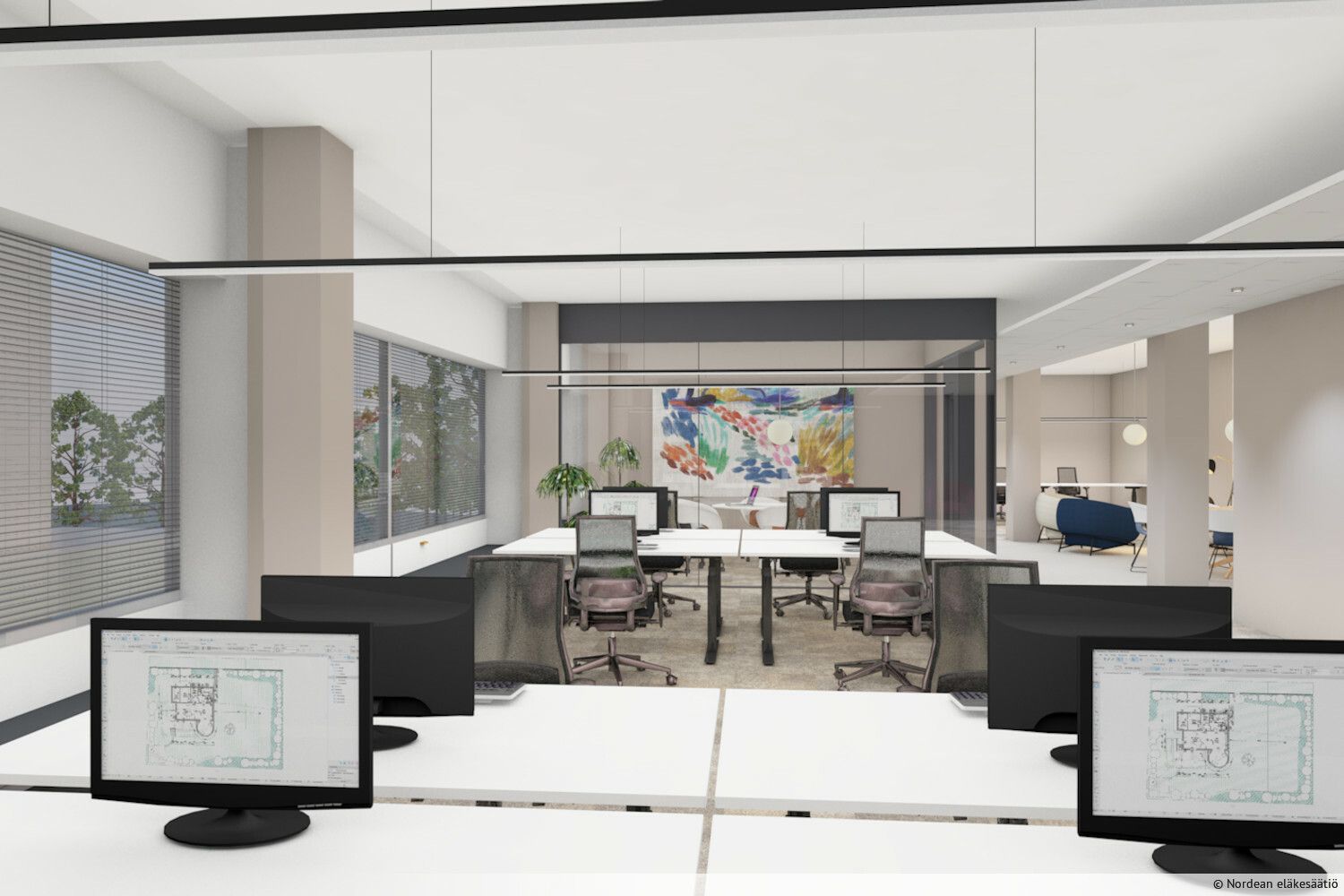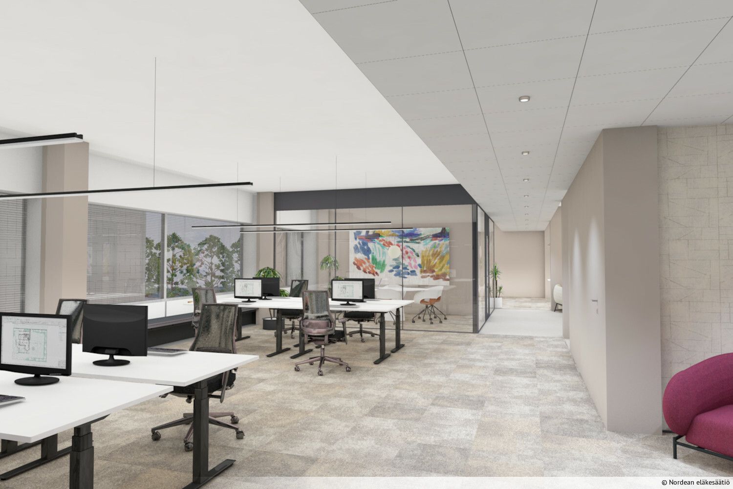 Vuokrattavana muunneltava, suurellekin toimijalle soveltuva toimistotila Taka-Töölön Sakkaroosissa. Kiinteistö sijaitsee erinomaisella paikalla, lähellä keskustan palveluita, ja sillä on hyvät julkisen liikenteen yhteydet. Toimitila voidaan myös jakaa pienemmiksi, noin 200 m² tiloiksi. Virtuaalisesti kalustetut kuvat ja kalustepohjat ovat ainoastaan markkinointitarkoituksiin, eivätkä ne edusta nykytilannetta.