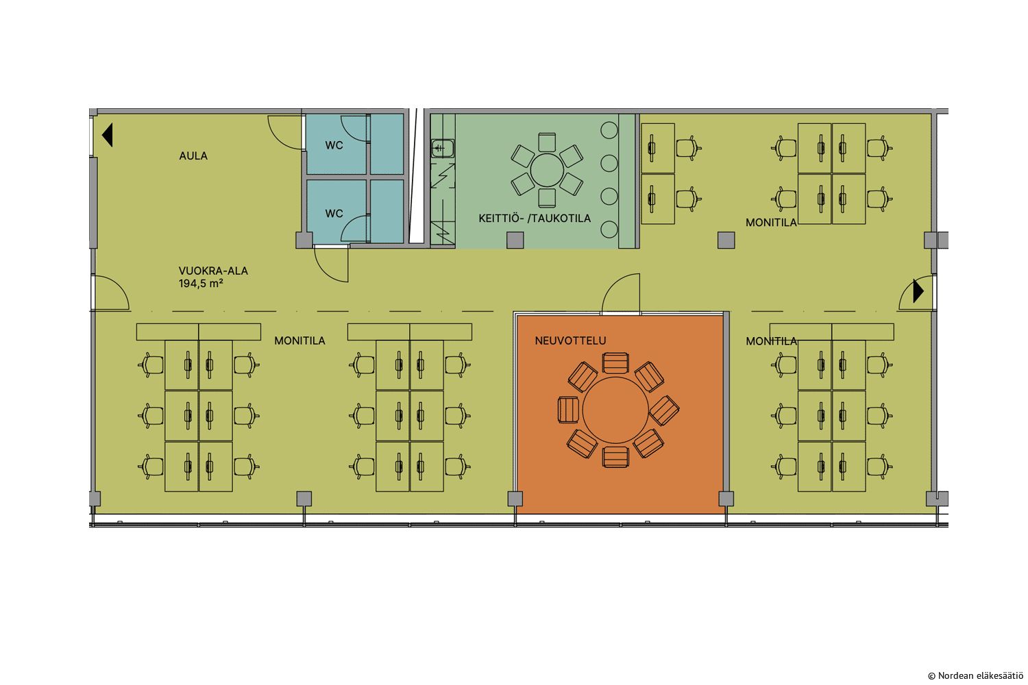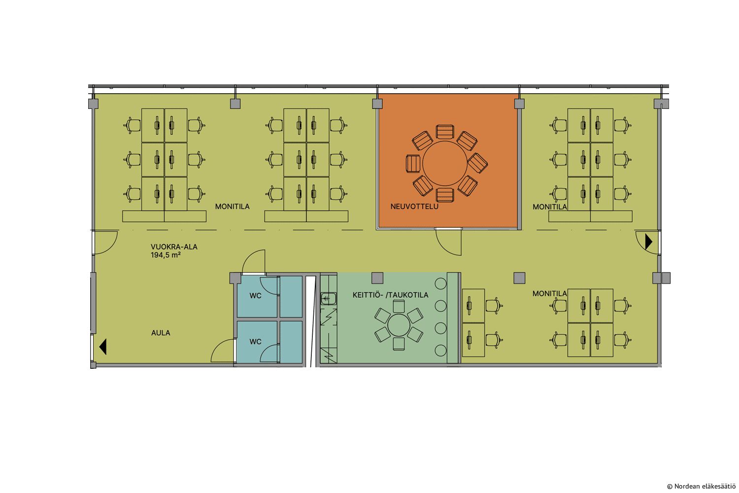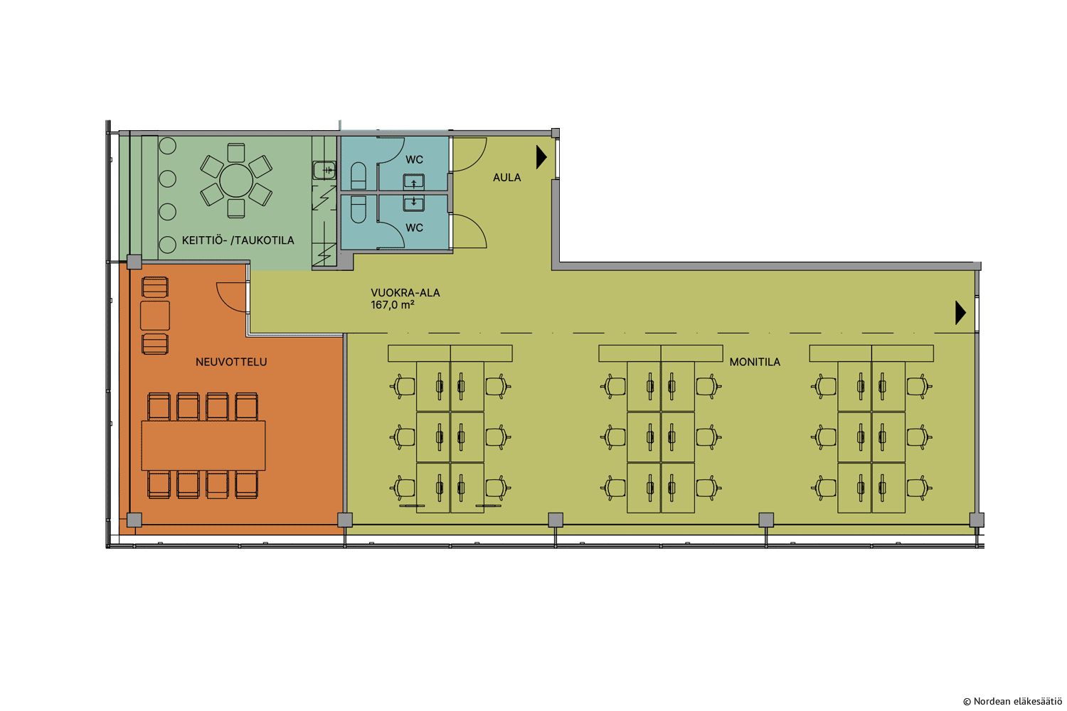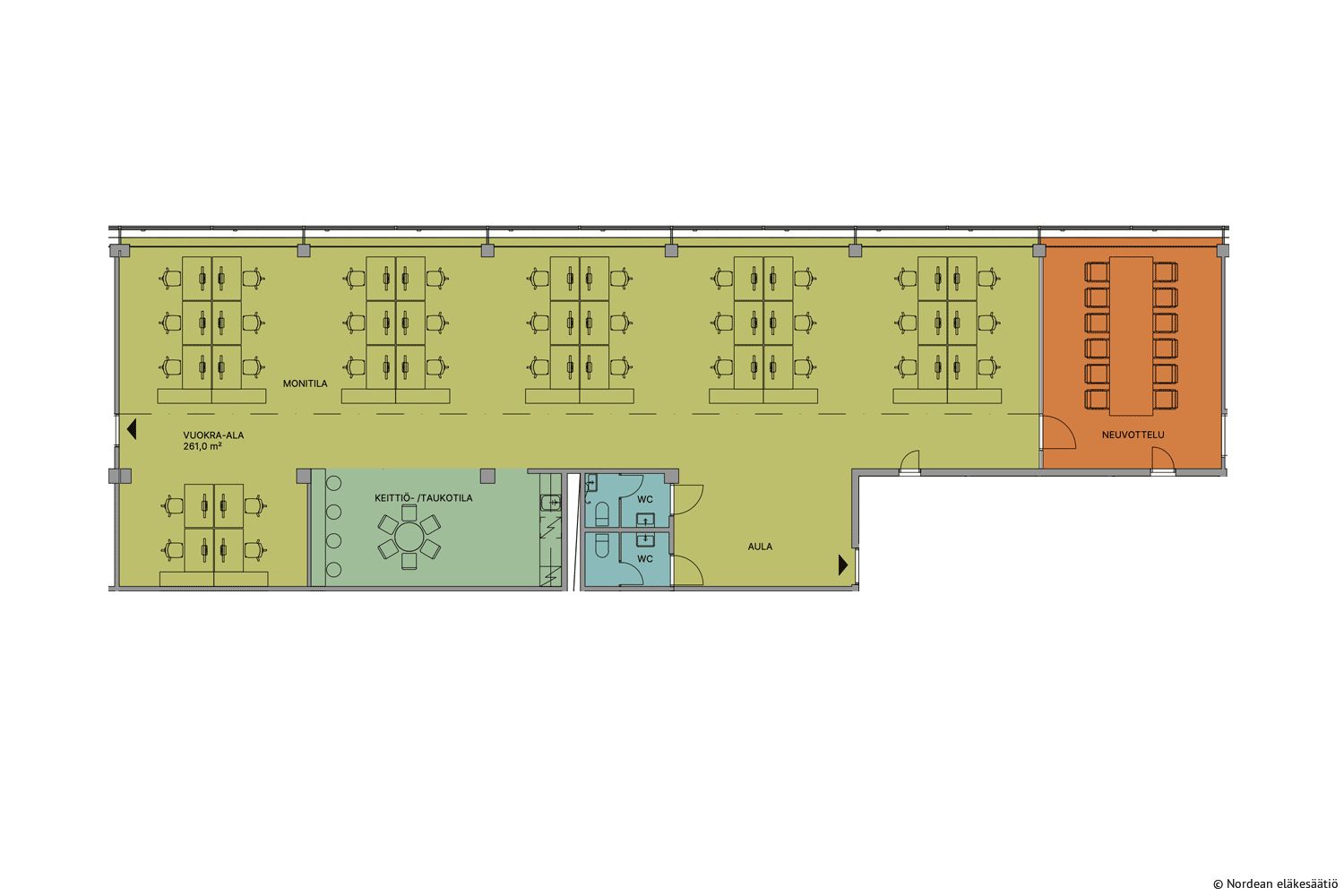 Vuokrattavana muunneltava, suurellekin toimijalle soveltuva toimistotila Taka-Töölön Sakkaroosissa. Kiinteistö sijaitsee erinomaisella paikalla, lähellä keskustan palveluita, ja sillä on hyvät julkisen liikenteen yhteydet. Toimitila voidaan myös jakaa pienemmiksi, noin 200 m² tiloiksi. Virtuaalisesti kalustetut kuvat ja kalustepohjat ovat ainoastaan markkinointitarkoituksiin, eivätkä ne edusta nykytilannetta.