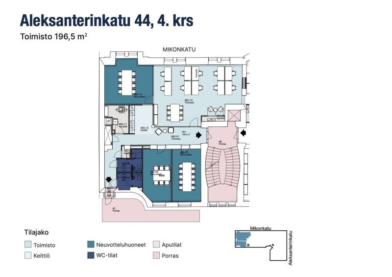 Kaunis ja kompakti 196,5 m² toimisto Mikonkadun ja Aleksanterinkadun kulmassa.