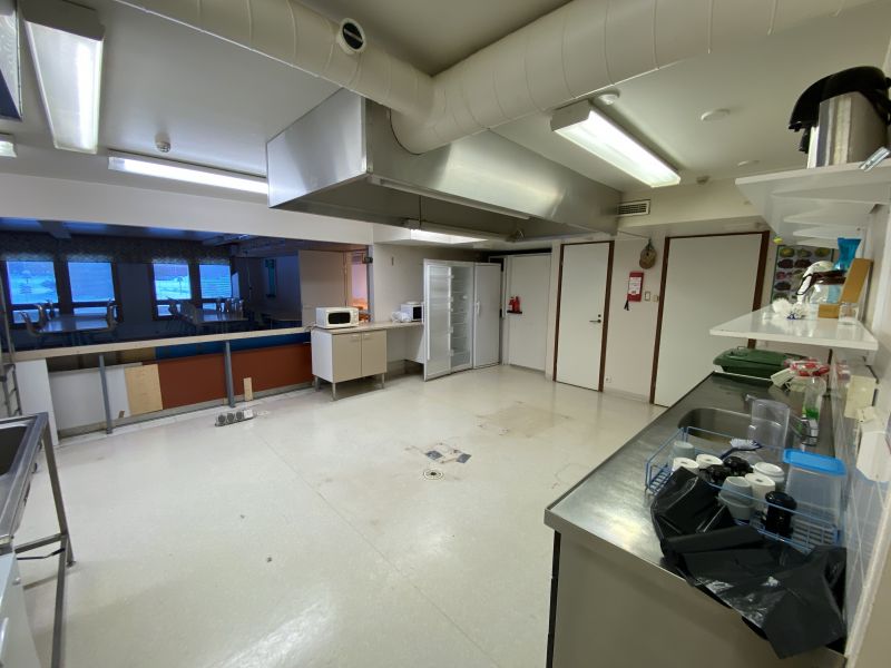 Oma lounaskeittiö ja ruokailusali. Kunnan palvelut alle 10km