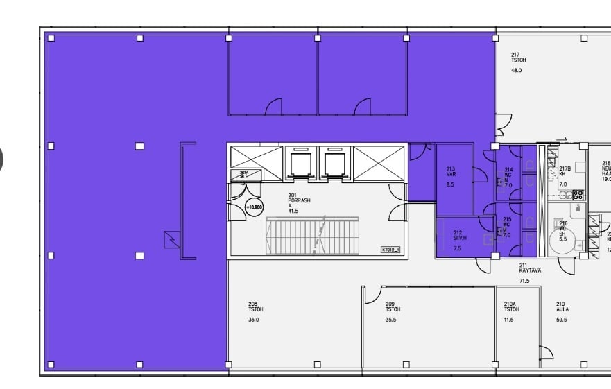 Monenlaiseen toimistotarpeeseen taipuva 343-neliöinen tila B-talon toisessa kerroksessa.