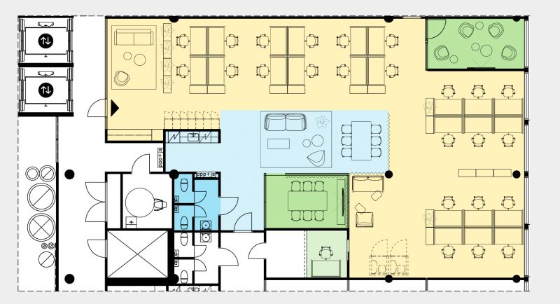 Vuokrattavana kolmannen kerroksen tehokasta, modernia toimistotilaa. Tilassa on avotila, työhuoneet, neuvottelutilat, oma toimiva taukokeittiö ja wc:t.