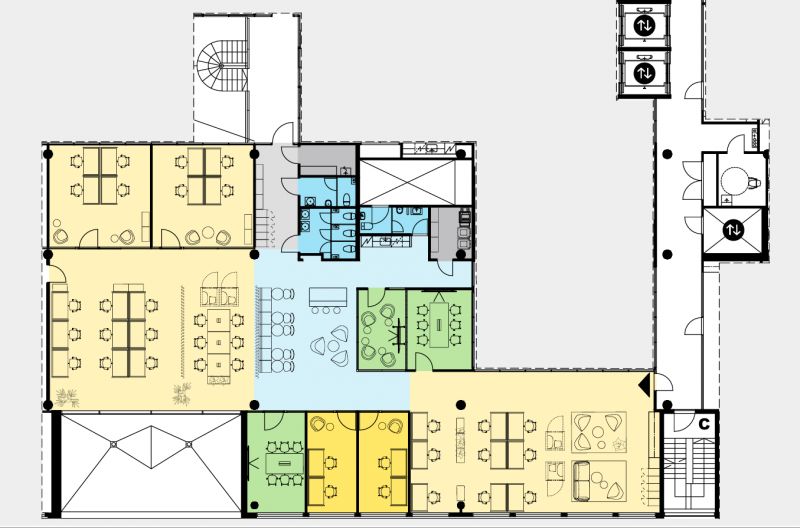 Vuokrattavana kolmannen kerroksen tehokasta, modernia toimistotilaa. Tilassa on avotila, tyähuoneet, neuvottelutilat, oma toimiva taukokeittiö ja wc:t.