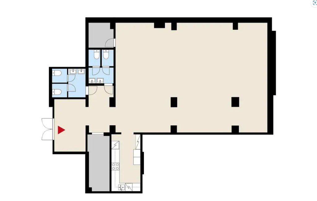 Liiketilassa ei ole rasvakanavaa, joten tila sopii toimijalle, joka valmistaa leipomotuotteita tai kylmäruokia.