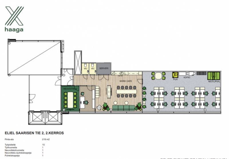 Eliel Saarisen tie 2 on nykyaikainen, valoisia ja muuntojoustavia toimitiloja tarjoava toimistokiinteistö. Kiinteistössä on lounasravintola sekä kuntosali vuokralaisten käytössä.