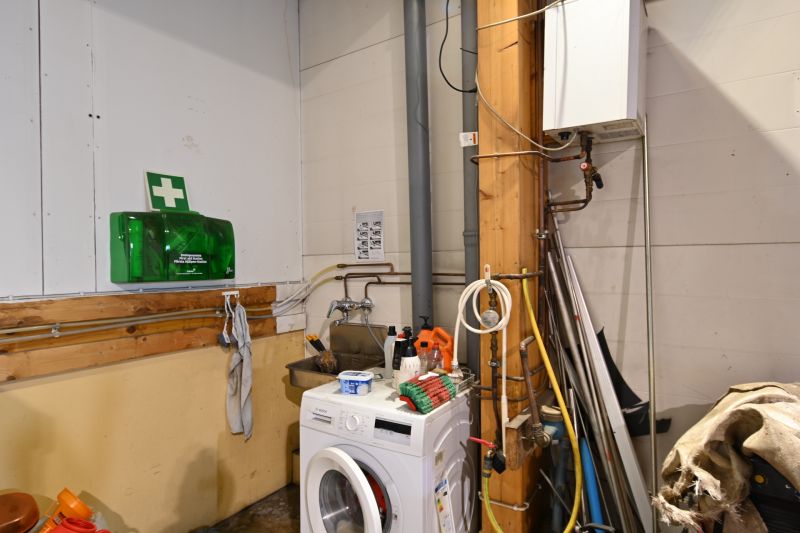 Hallissa lattiakaivo. Öljylämmitys, vuosikulutus ollut 3 000 litran luokkaa.