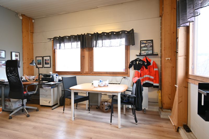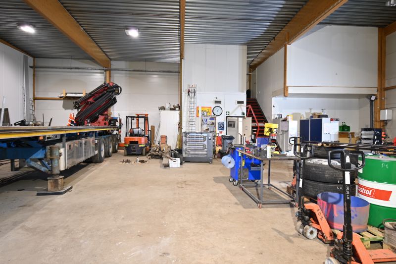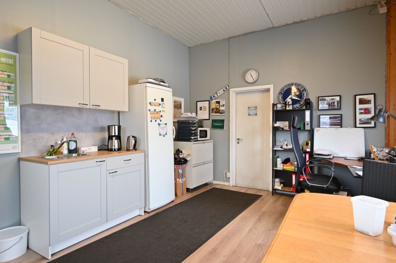 Tilakokonaisuus, jossa hallitilan lisäksi katutason toimisto, sekä 2.krs toimistohuone. Tiloissa kahdet vessat ja pukuhuone.