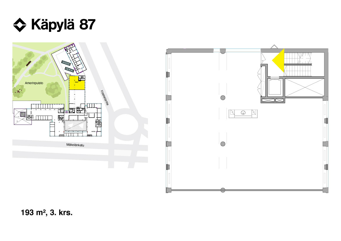 Vuokrattavana viihtyisä toimistotila talosta joka rakennettiin alunperin AMER-yhtymän pääkonttoriksi. Kiinteistössä on edustavat aula- ja julkiset tilat sekä monipuoliset oheispalvelut. Tila räätälöidään tulevalle käyttäjälle sopivaksi.