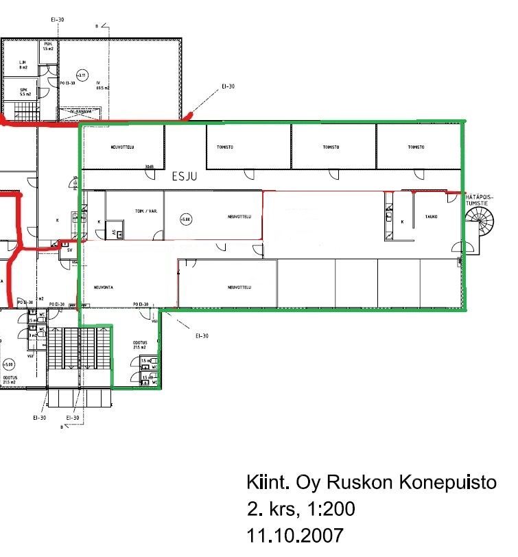 Toimistotila 2. krs, yht. n. 556 m2.