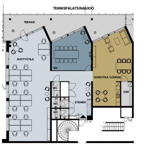Vuokrattavana edustavaa, modernia, näyttävää toimistotilaa Kampin ytimessä. Toimistotilan yhteydessä on n. 50 m2 terassi, josta avautuu näkymät Tennispalatsinaukiolle.