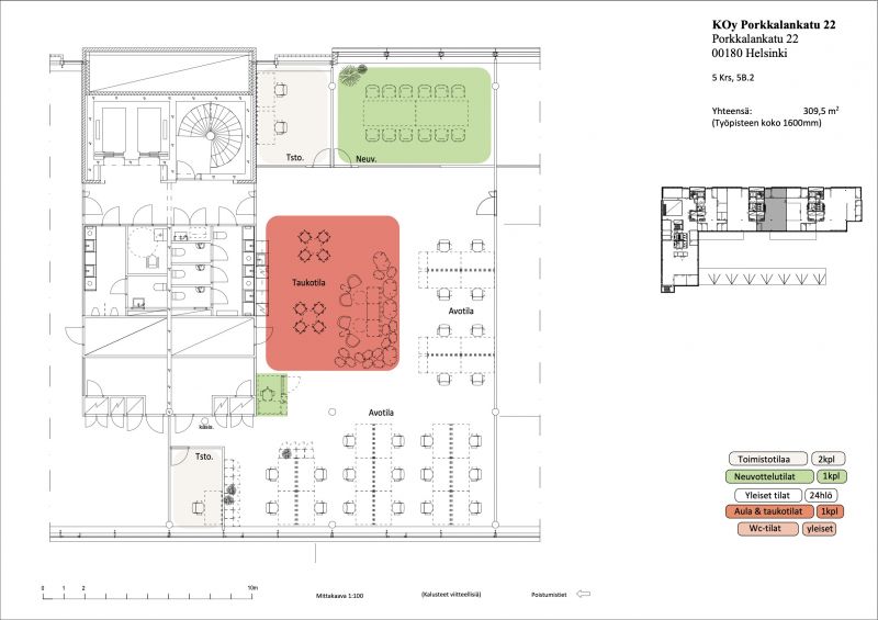 Moderni 310 m² toimistotila kiinteistön 5. kerroksesta Ruoholahdessa