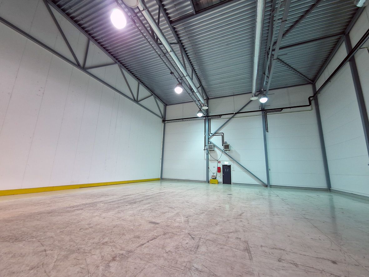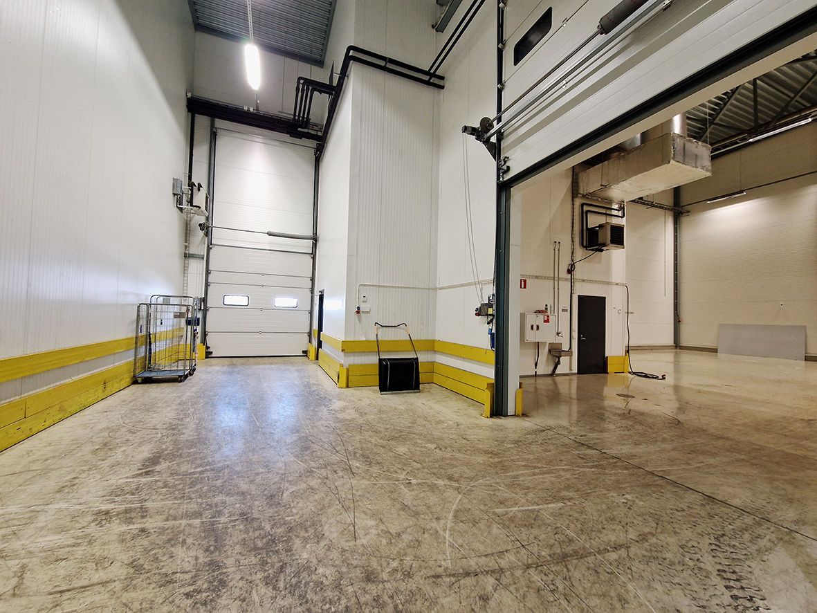 Korkea hallitila. Vapaa korkeus kantavaan palkkiin 7,9 m ja kattoon yli 10 m. Tilaan on yksi lastaustasku rekalle. Mahdollisuus rakentaa nosto-ovi myös maanpinnan tasoon.
