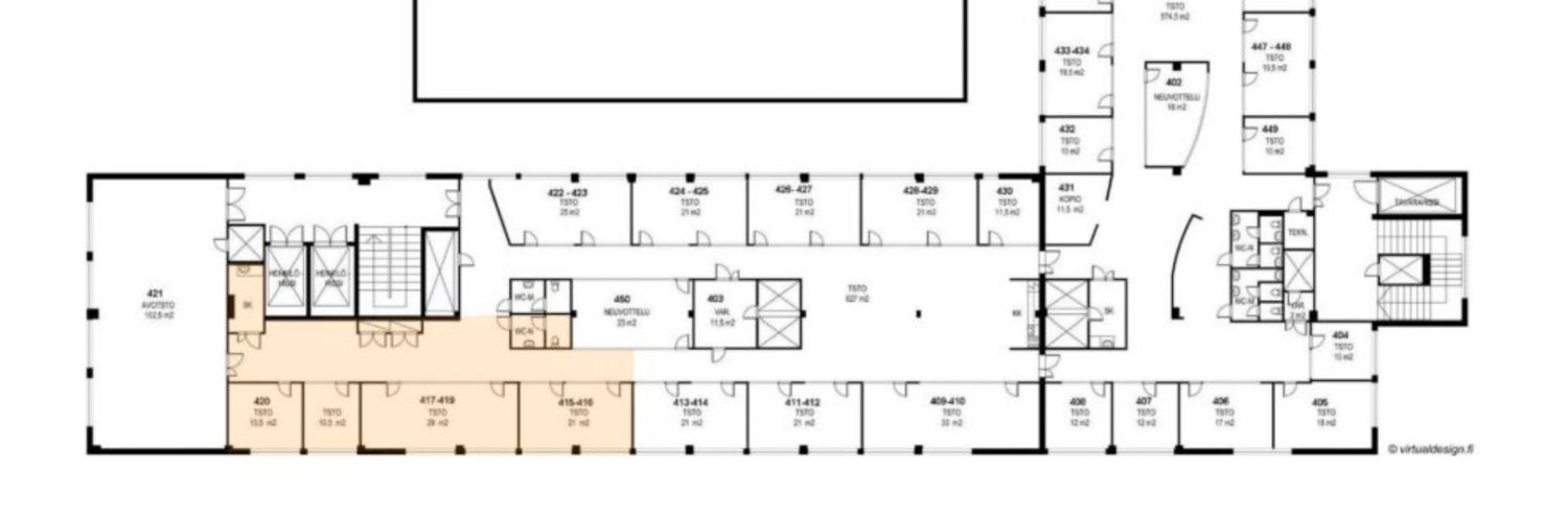 Vuokrataan jäähdytetty toimistotila omalla sisäänkäynnillä rakennuksen neljännessä kerroksessa. Tila koostuu useammasta toimistohuoneesta ja tilajakoa on muokattavissa tarpeen mukaan.
