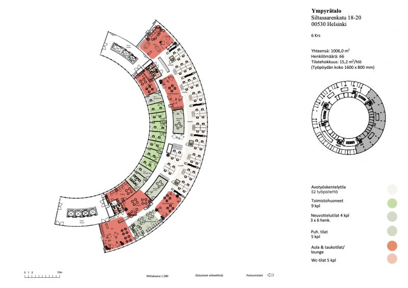 Siistiä ja persoonallista toimistotilaa Hakaniemen maamerkissä Ympyrätalossa.