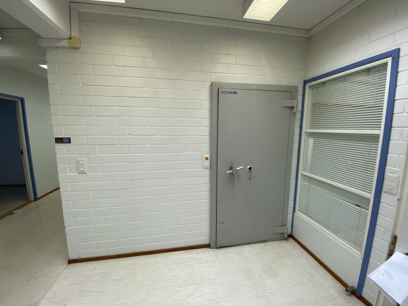 Toimistotila äänieristetyillä seinillä ja desibeliovilla.