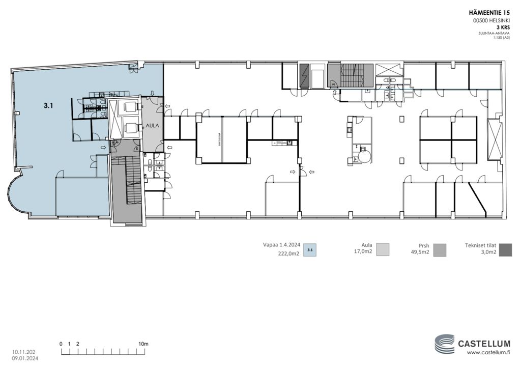 Tämä 222m2 kokoinen toimisto sijaitsee kiinteistön 3. kerroksessa. Toimistotila, jossa on huoneita sekä tiimeille että rauhalliseen työskentelyyn. Avaruutta tilaan tuo kaareva erkkeri. Kiinteistö sijaitsee erinomaisella paikalla Helsingin Sörnäisissä.