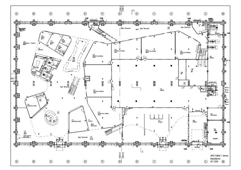 - 1.kerroksessa ovat upea aula + vastaanotto, useita neuvottelutiloja ja showroomeja. Mukana on myös hieno lounge-/monitoimitila. Olemassa oleva Amer Sportsin myymälä on muutettavissa toimistotilaksi. Varastotilaan on lastausovi.